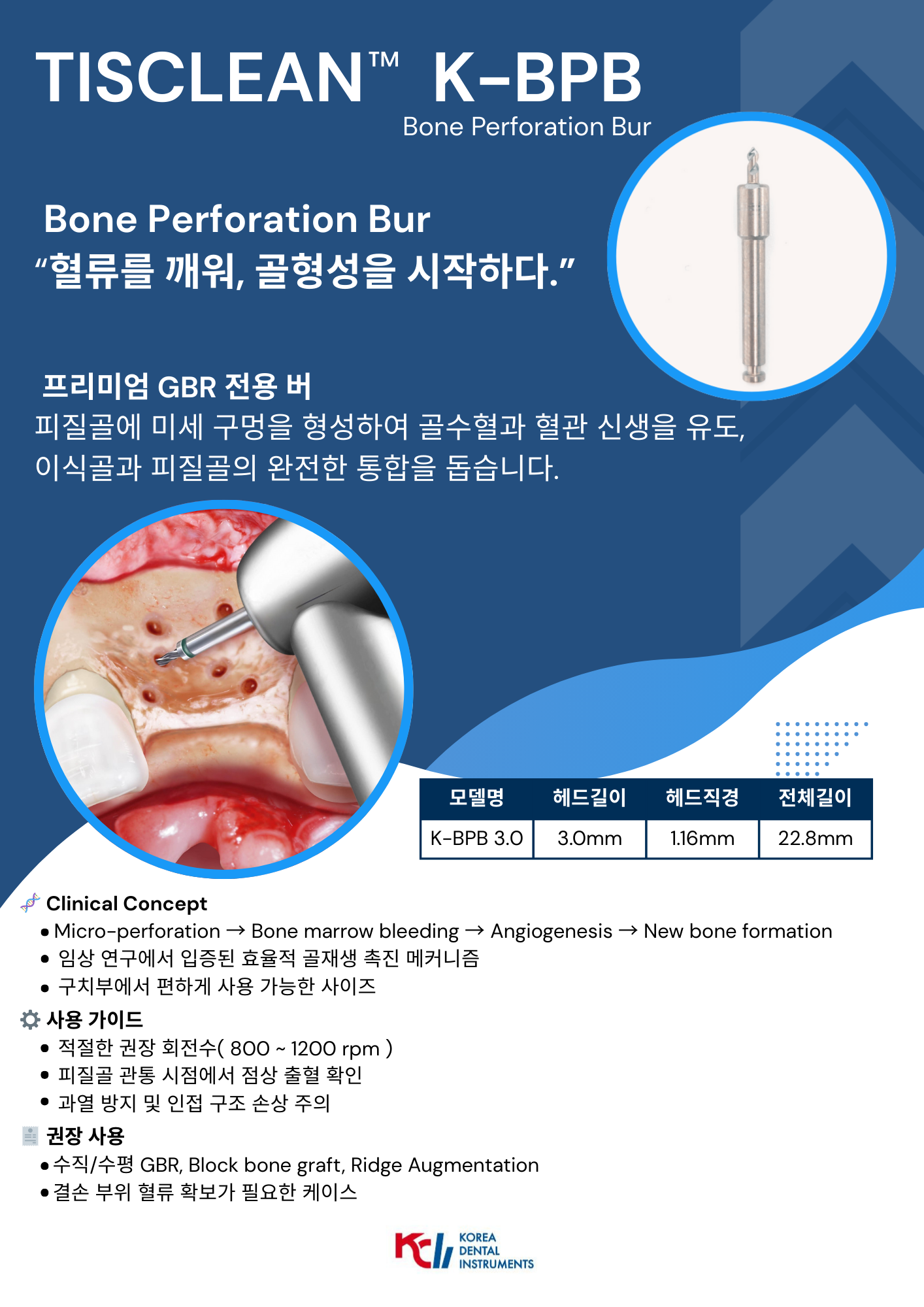 안전한 천공을 위한 피질골 골수혈과 신생을 유도 bur